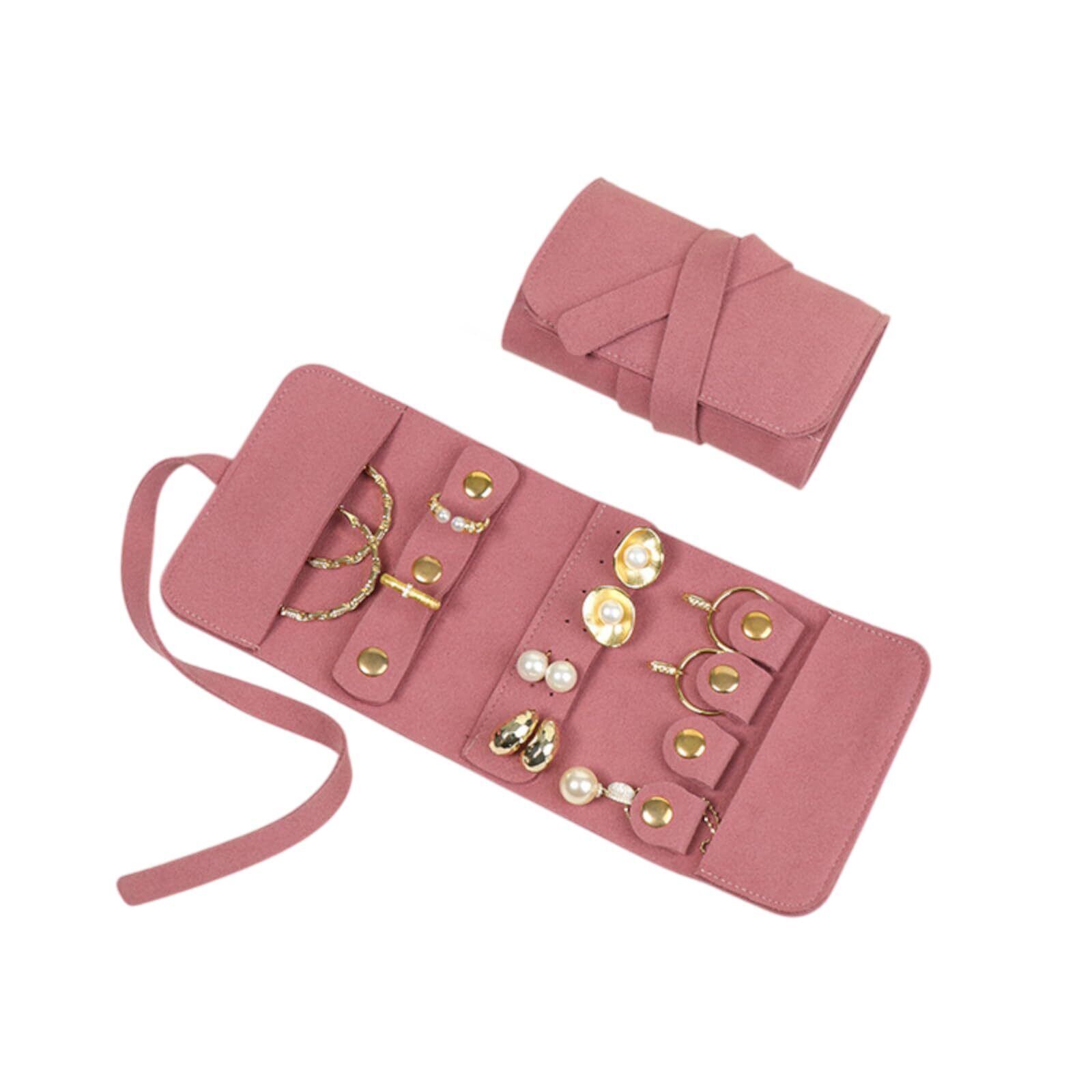Be&U ジュエリーポーチ コンパクト 携帯用 アクセサリー収納ケース ネックレス リング 腕時計 折りたたみ 収納 軽量 旅行用 持ち運びに便利 整理 保護 (ピンク)