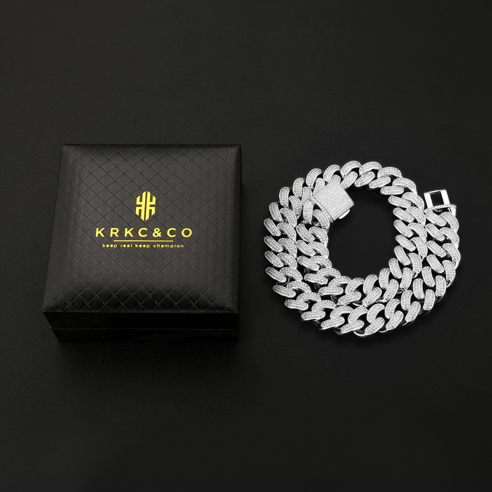 KRKC&CO 喜平ネックレス ジルコニア マイアミ キューバンチェーン 12/18mm 14K金メッキ CZダイヤ 太目 メンズネックレス チョーカー ヒップホップ ダンサー ラッパー アクセ