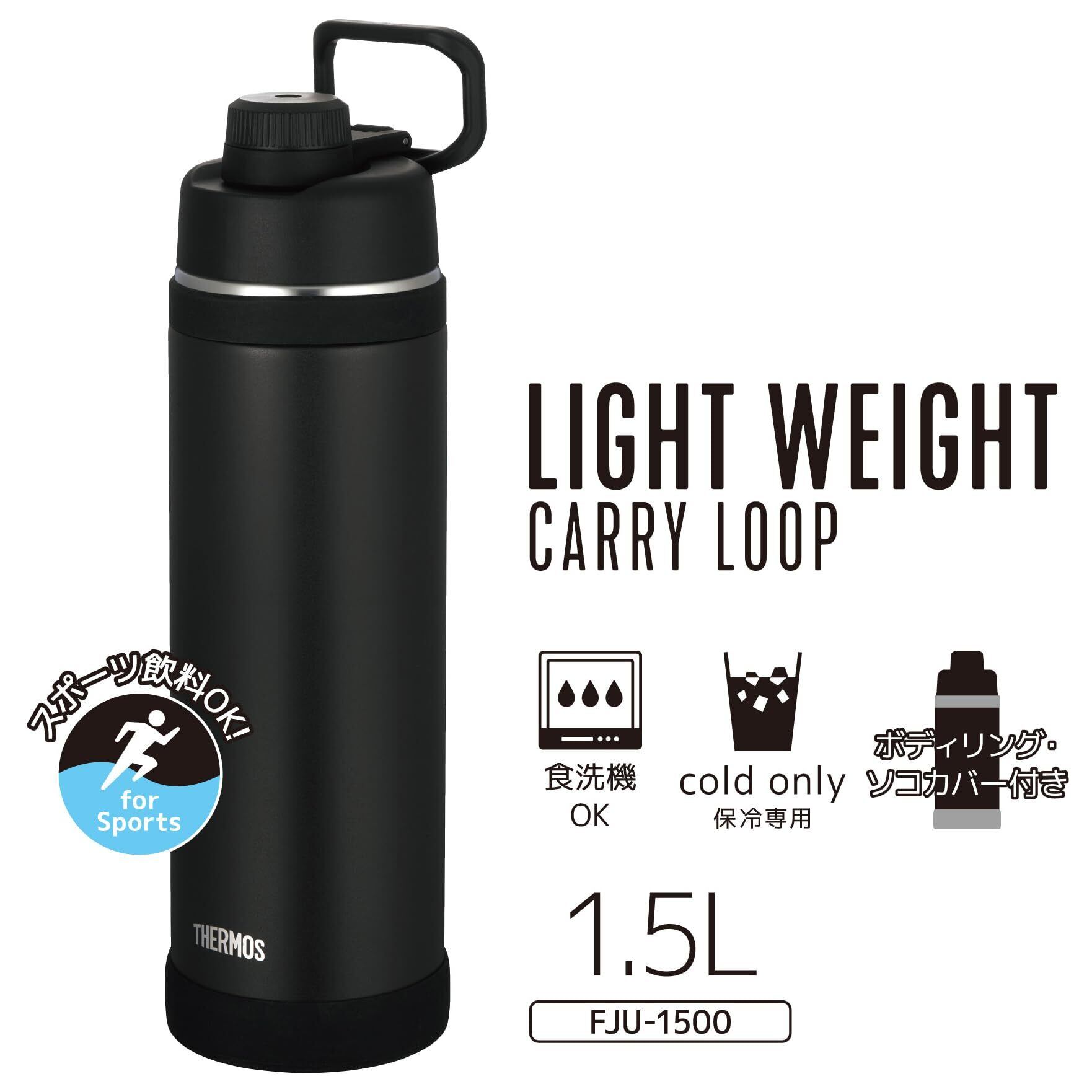 【特価商品】【ハンドル付き・食洗機対応】 サーモス 水筒 真空断熱スポーツボトル 1.5L ブラック 持ち運びに便利なキャリーループ 直飲み 飲み口が外せて洗いやすい 保冷専用 FJU-1500 BK