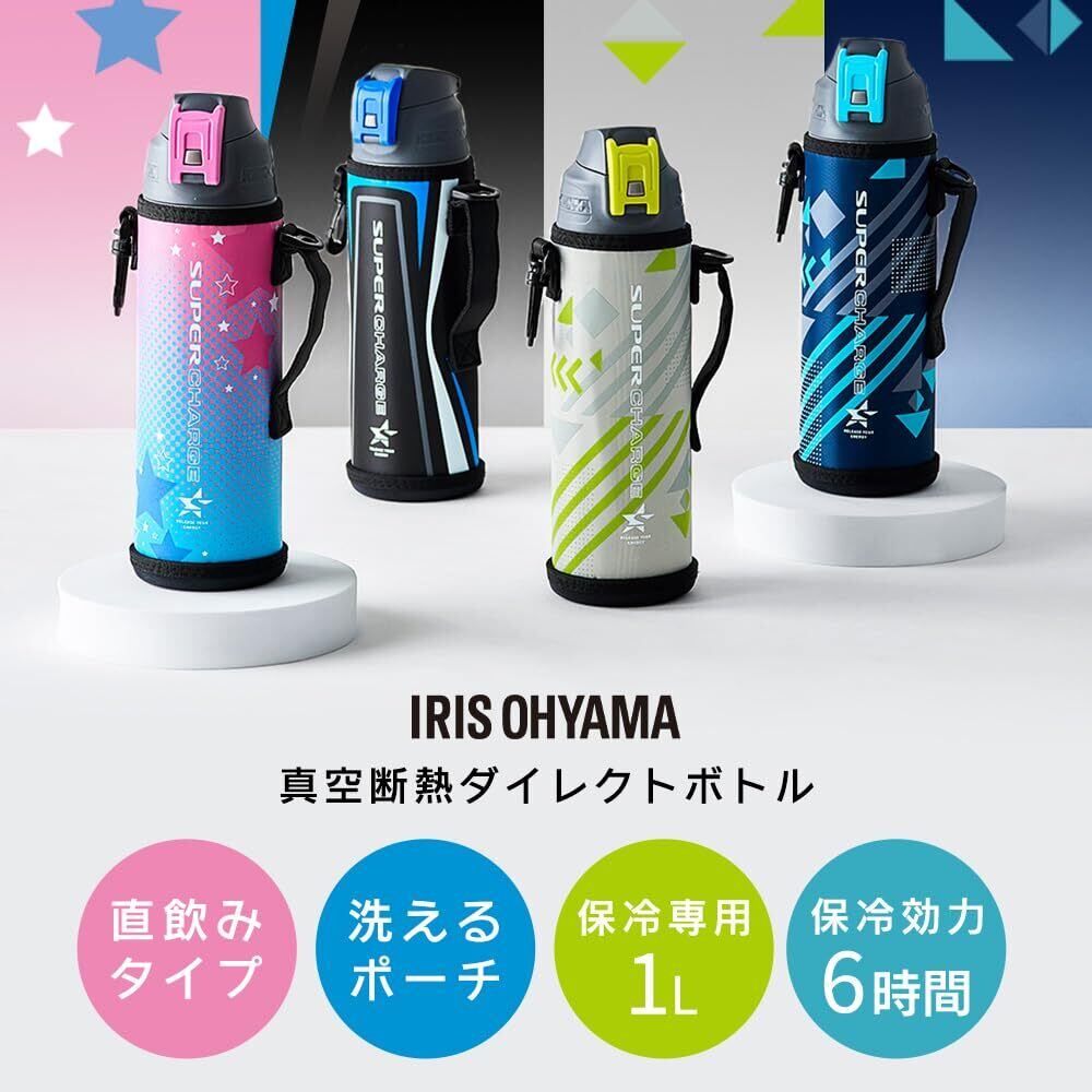 【人気商品】アイリスオーヤマ 真空断熱ダイレクトボトル 1L 保冷6時間 直飲みタイプ 持ち運び可能 ポーチ付き 水筒 子供 DBR-1000 ネイビー (ネイビー×スカイブルー)