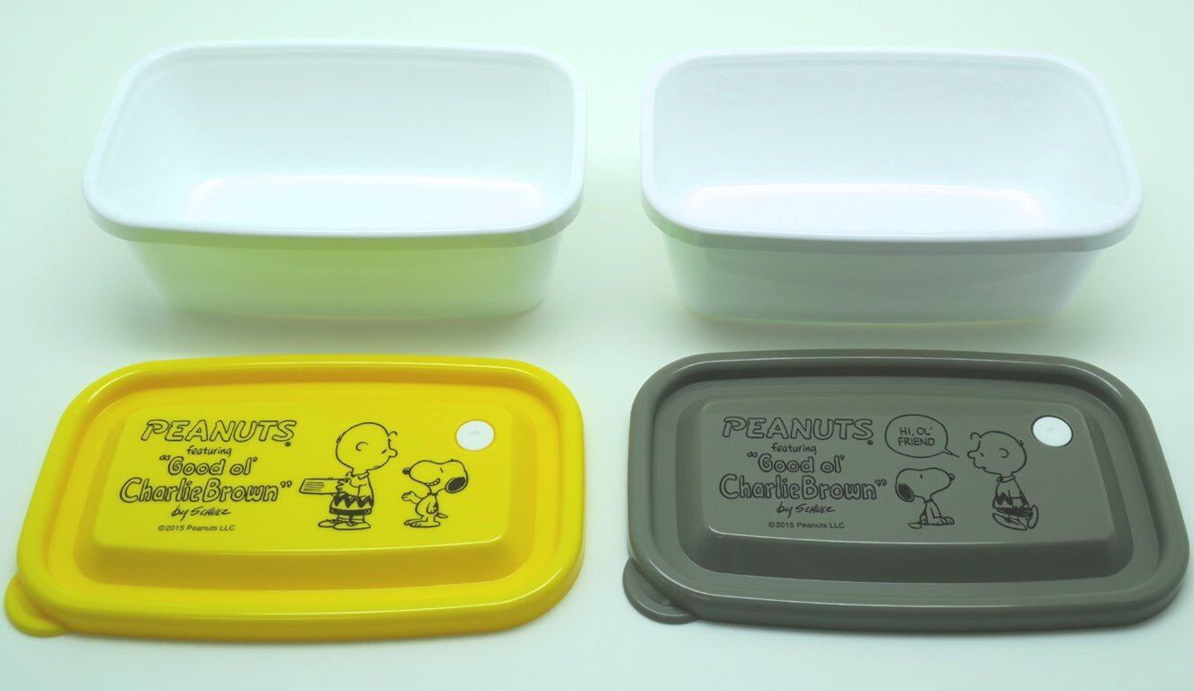 スヌーピーとチャーリーブラウンがデザインされた保存容器です