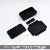 素材・材質:本体・仕切=ポリプロピレン、フタ・止め具=PCT/ABS、パッキン・吸排気弁=シリコーンゴム、箸=PMMA