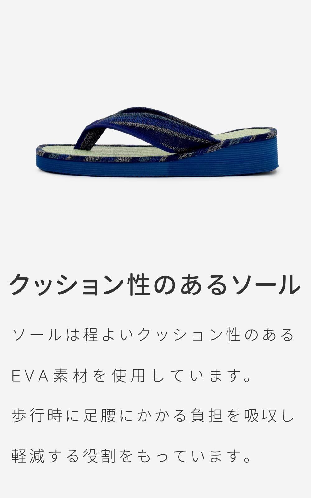 天然素材である井草(いぐさ)は高い通気性と吸汗・速乾性、そして温度調節機能をもっています。 足の裏側に熱がたまらず、 いつでもサラッと快適です。ちょっとしたお出かけはもちろん室内用のスリッパがわりにもご使用いただけます。