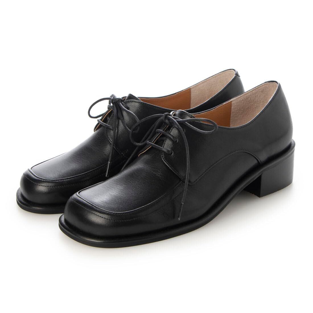 程よくヒールアップして、メンズライクになりがちなレースアップシューズを女性らしい雰囲気に仕上げています。