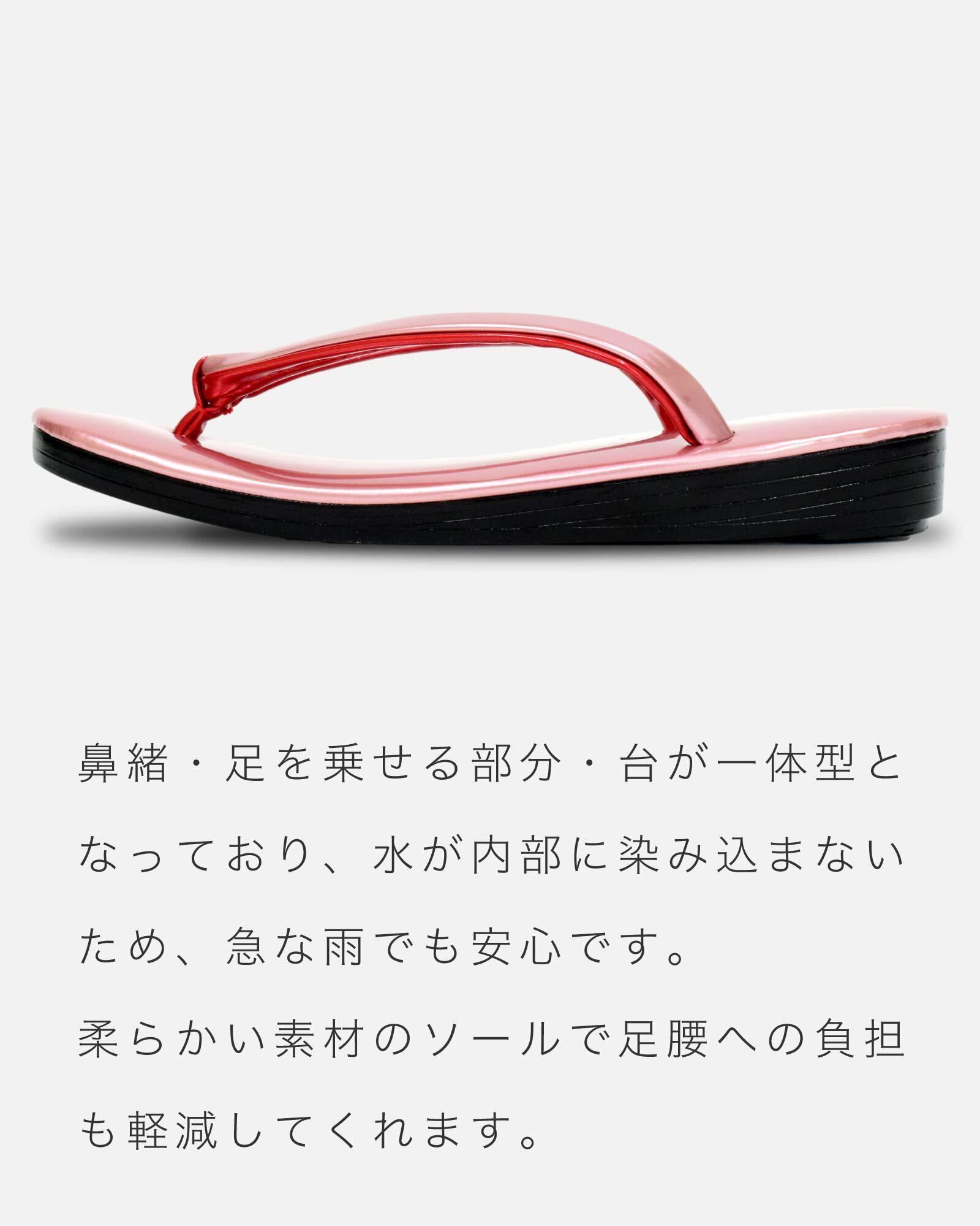この草履は、ウレタン素材を使用しており、柔らかくて歩きやすいのが特長です。足に優しくフィットし、長時間の使用でも疲れにくいデザインが施されています。女性らしいラインを演出しつつ、きちんとした印象を与えるツートンカラーは、特別な日からデイリーユースまで幅広く活躍します。