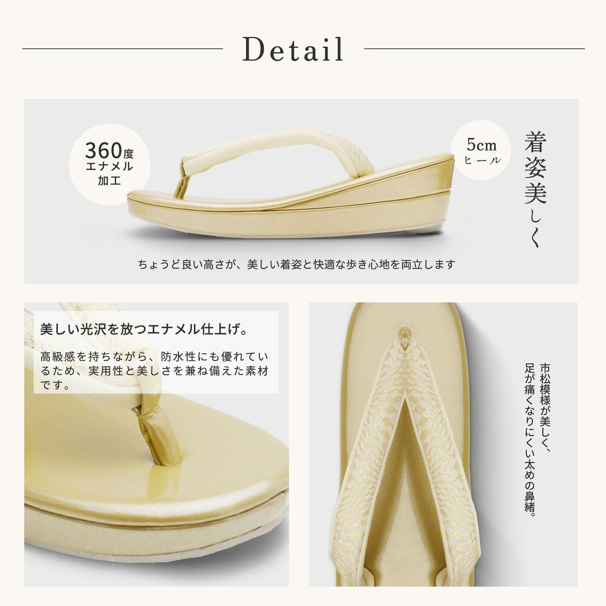 あなたの足にぴったりのサイズを見つけやすい、豊富なサイズ展開を実現。特別なイベントや式典など、場面に応じたコーディネートを楽しめる草履です。