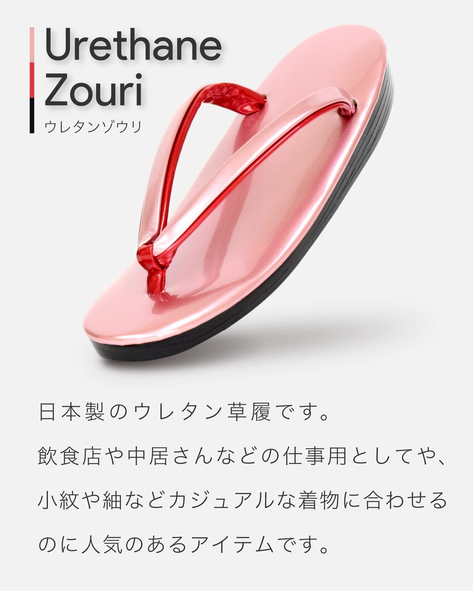 日本製のウレタン草履です。飲食店や中居さんなどの仕事用としてや、小紋や紬などカジュアルな着物に合わせるのに人気のあるアイテムです。