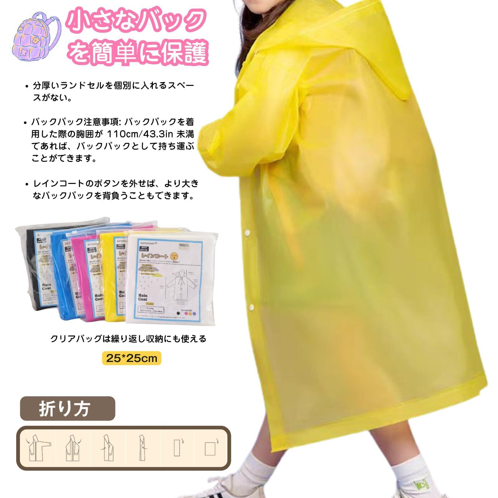 【DZTSMART レインコート こども用 】素材:EVA(エコ)ワンサイズ:着丈90cm,幅55cm(胸囲110cm)適用身長110-150cm。対象:子供,男女兼用。5色の自由選択:ホワイト、ブラック、イエロー、ピンク、ブルー。セット:1枚。
