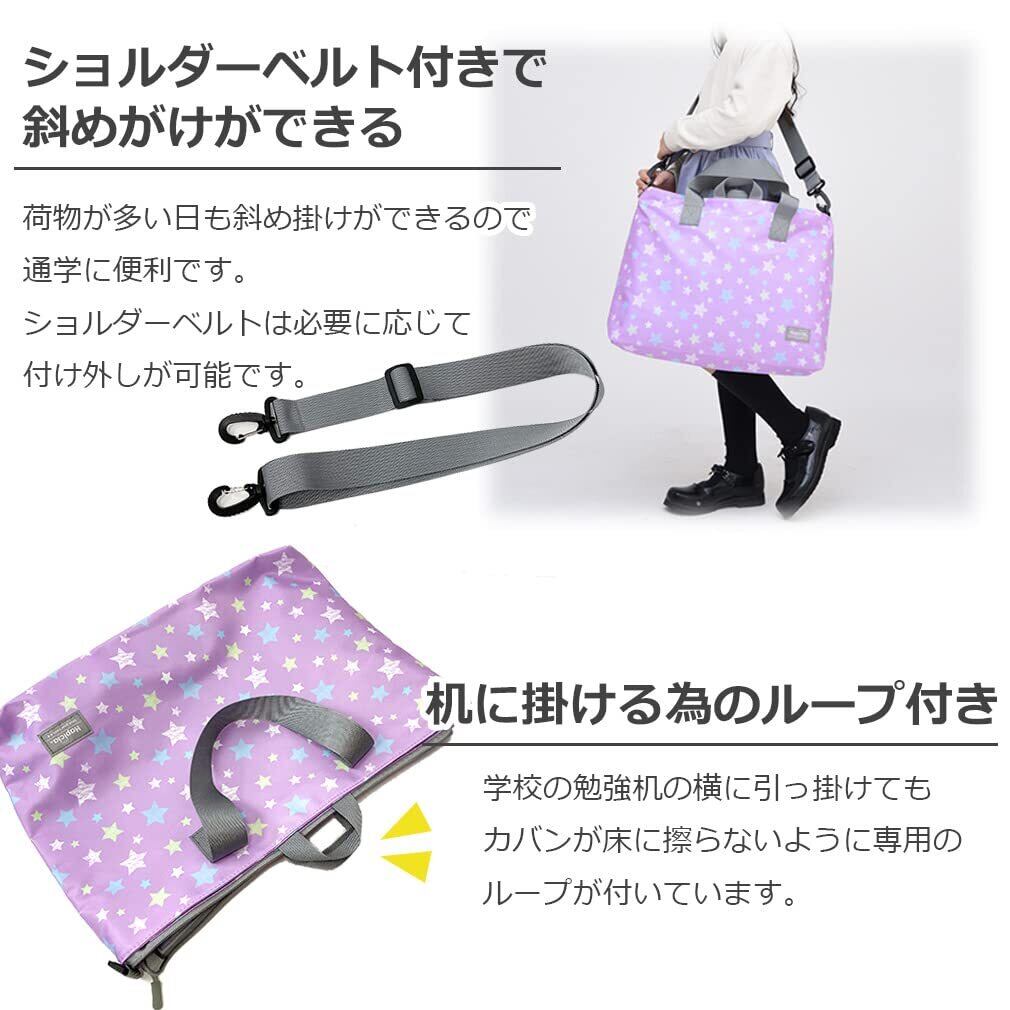 [Hapicia] レッスンバッグ マチ付き ファスナー ショルダー ベルト ループ 付き 斜めがけ 男の子 女の子 小学生 子供 大きめ 撥水 2way
