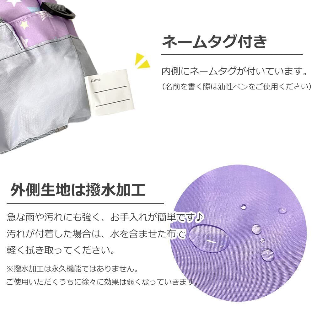 汚れや水に強い撥水加工が施されているので、急な雨や教室での飲み物こぼれにも安心してお使いいただけます。お子様が元気いっぱいに過ごす日常において、実用性に富んだ機能が盛り込まれています。