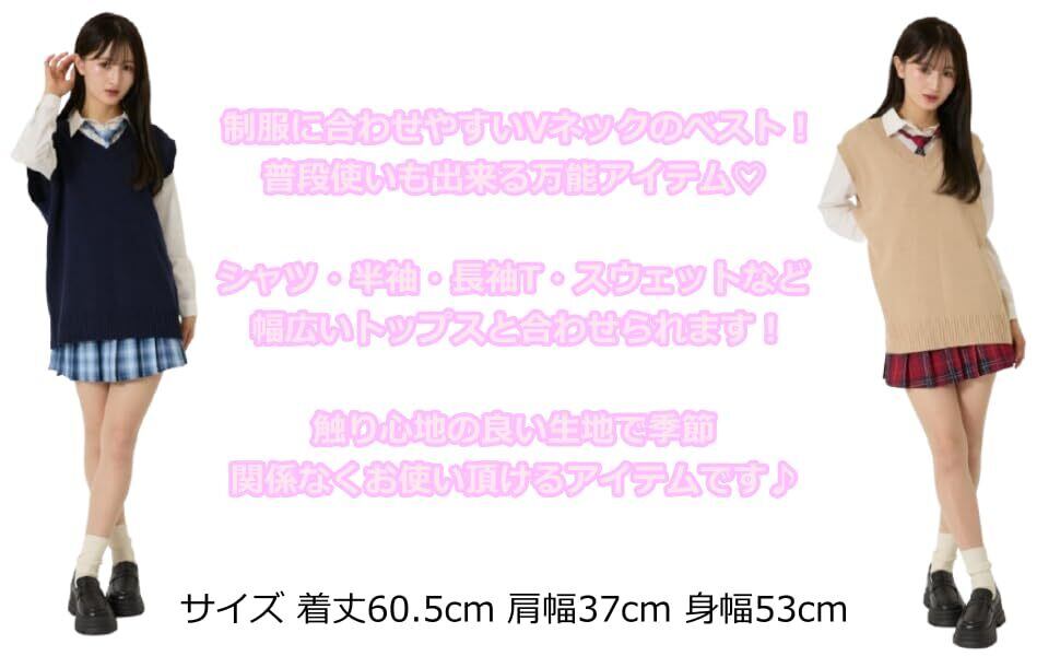[ウィゴー] スクールベスト 無地 ニット ベスト 制服 学生 ニットベスト スクール 女子 シンプル 高校生 通学 定番 セーター ギフト プレゼント 普段使い 春服 夏服 秋服 春 夏 秋 冬 レディース
