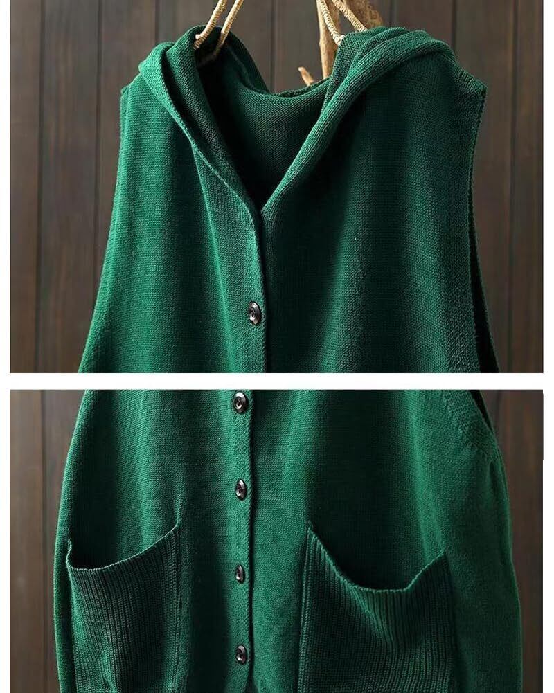 【在庫セール】[ASARANS] ベスト ニットベスト フード付き レディース ニット トップス ノースリーブ ポケット付き ゆったり 大きいサイズ 秋冬 重ね着 無地 可愛い カジュアル