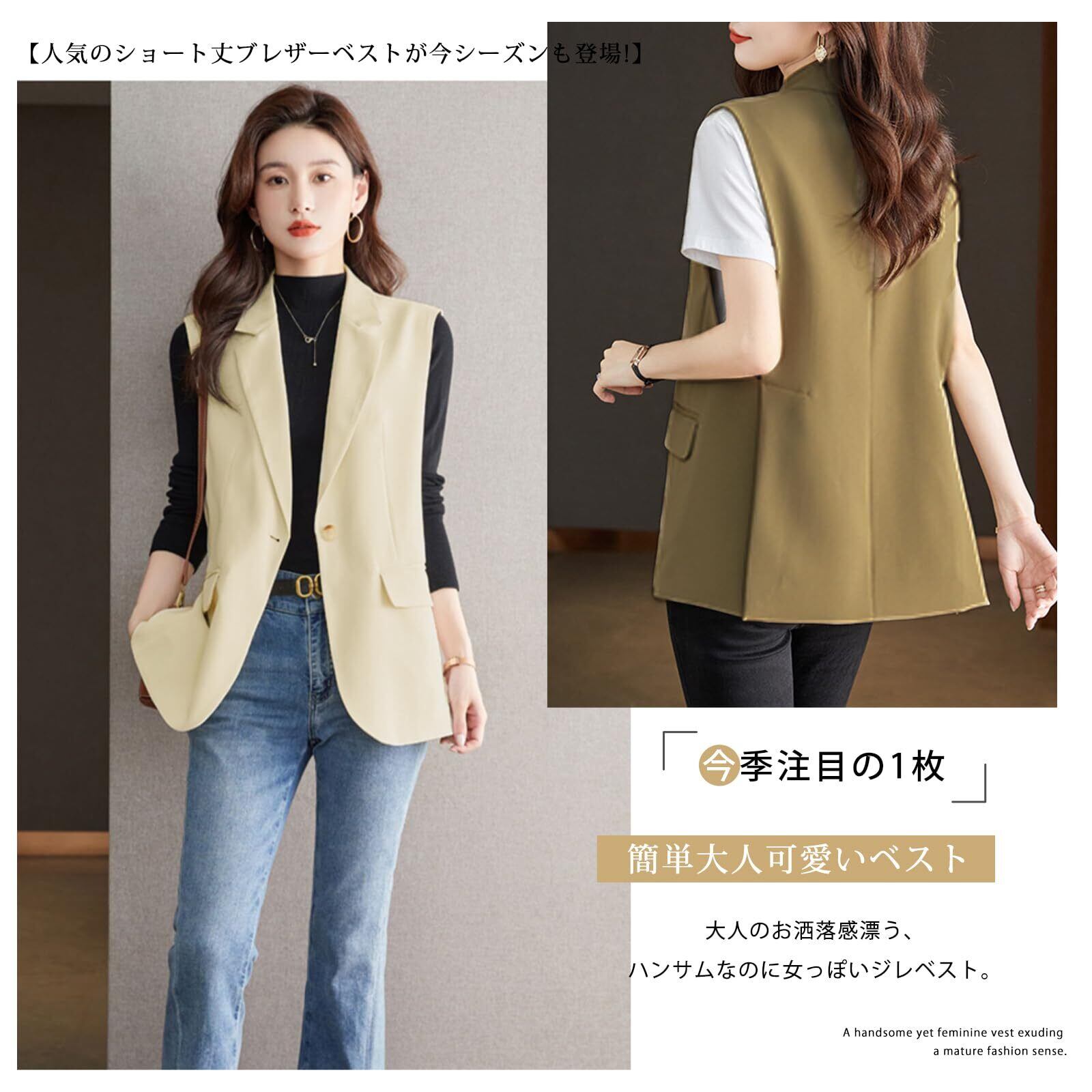 【特価商品】[Leadamon-oee] ベスト レディース ジレ 袖なし アウター トップス ノースリーブ ジャケット Vネック ポケット付き シャレ おしゃれ 前開き 無地 お洒落 裏地あり ゆったり 体型カバー レイヤード用 オフィス フォーマル 通勤 春 夏 秋