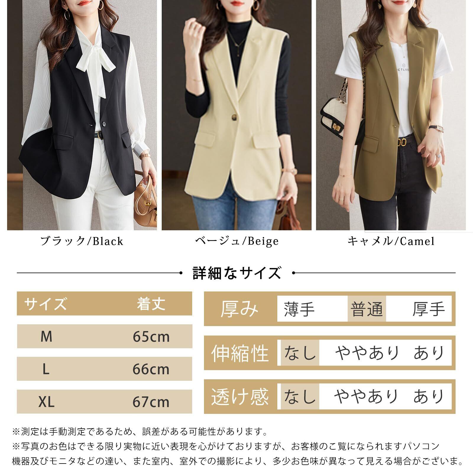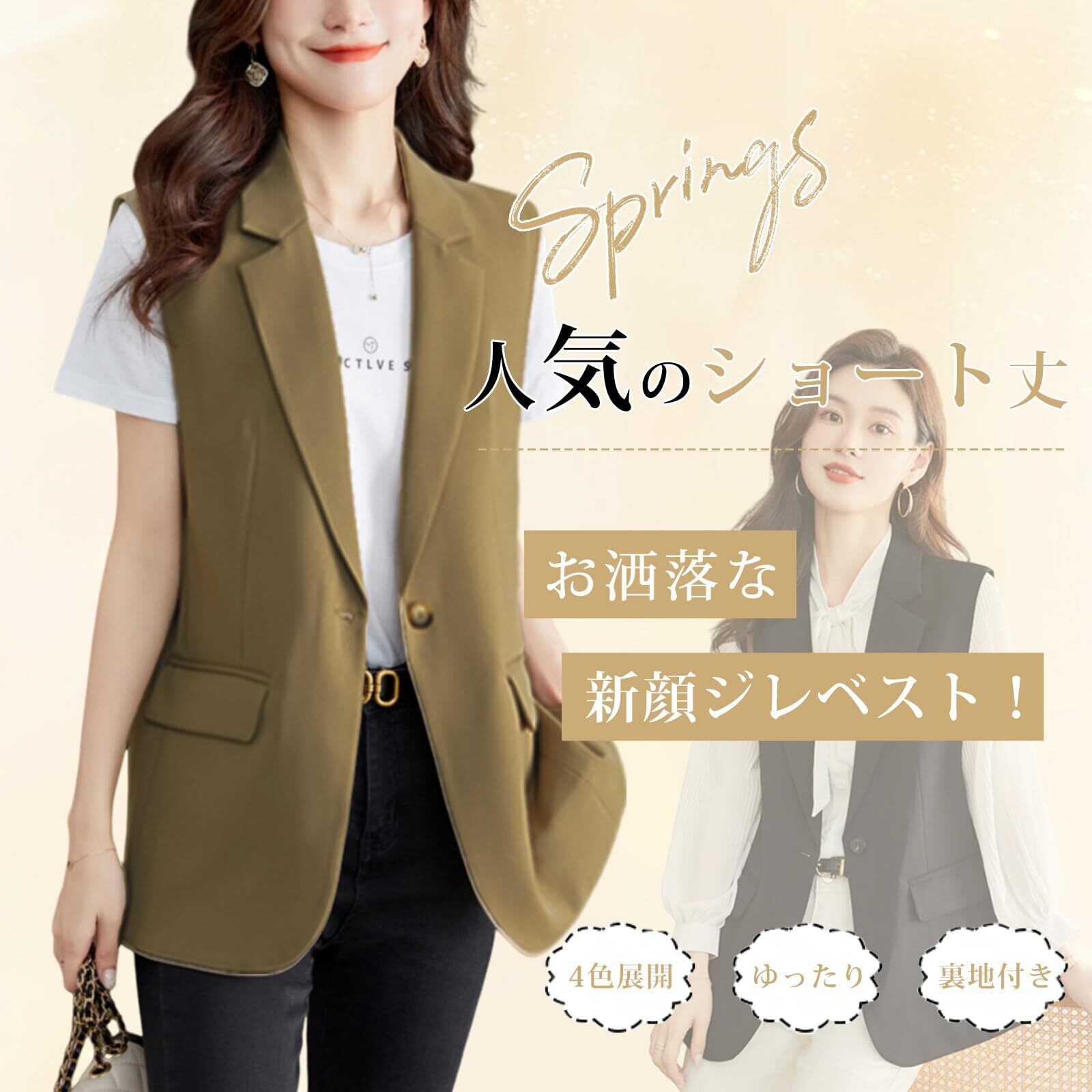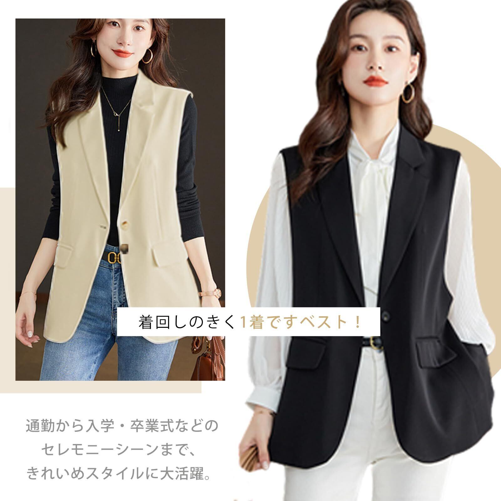 [Leadamon-oee] ベスト レディース ジレ 袖なし アウター トップス ノースリーブ ジャケット Vネック ポケット付き シャレ おしゃれ 前開き 無地 お洒落 裏地あり ゆったり 体型カバー レイヤード用 オフィス フォーマル 通勤 春 夏 秋