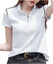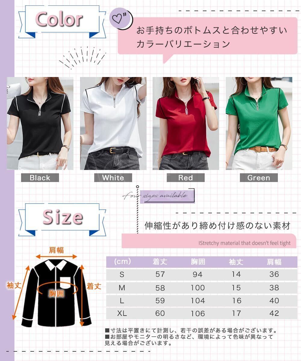 【数量限定】[three Joy] 【お洒落なジッパー付き】 ポロシャツ 半袖 立ち襟 ハーフジップ ストレッチ レディース 4カラー S~XL