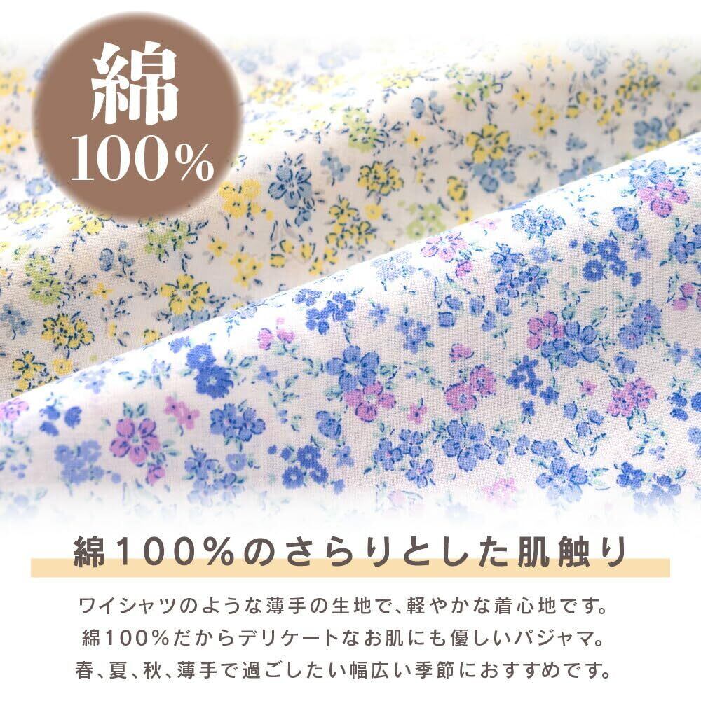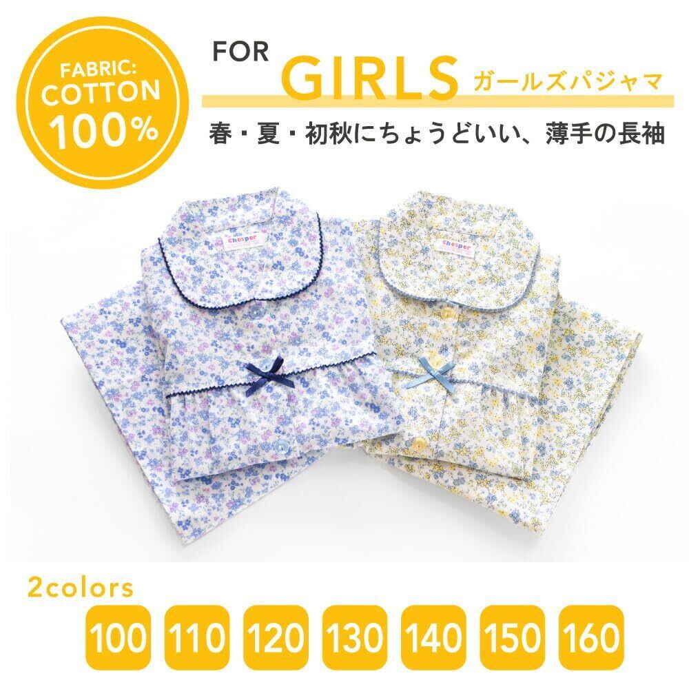 パジャマ ガールズ 綿100% Yシャツ素材 柔らかい 快適 上下セット 長袖 小花柄 春 夏 秋 通年