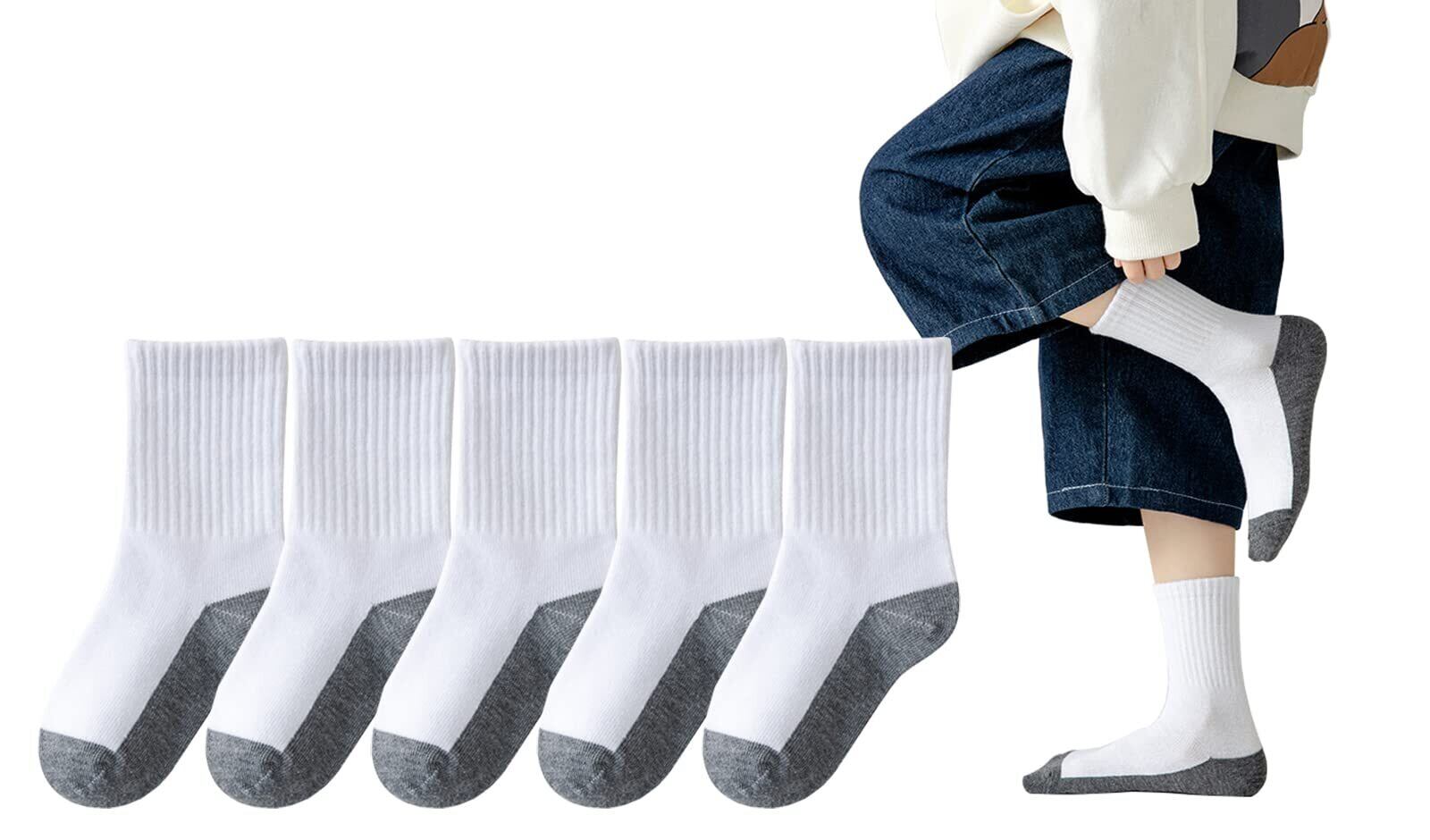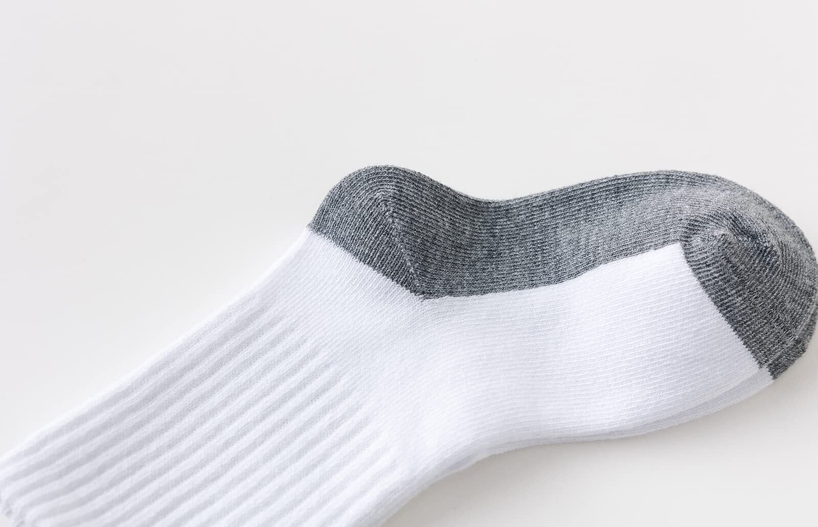 [Ciyar] 男の子と女の子の純綿ソックス スクール 汚れ目立たない 足底切り替え 白 リブ 靴下 つま先・かかと補強 クルー丈5足セット