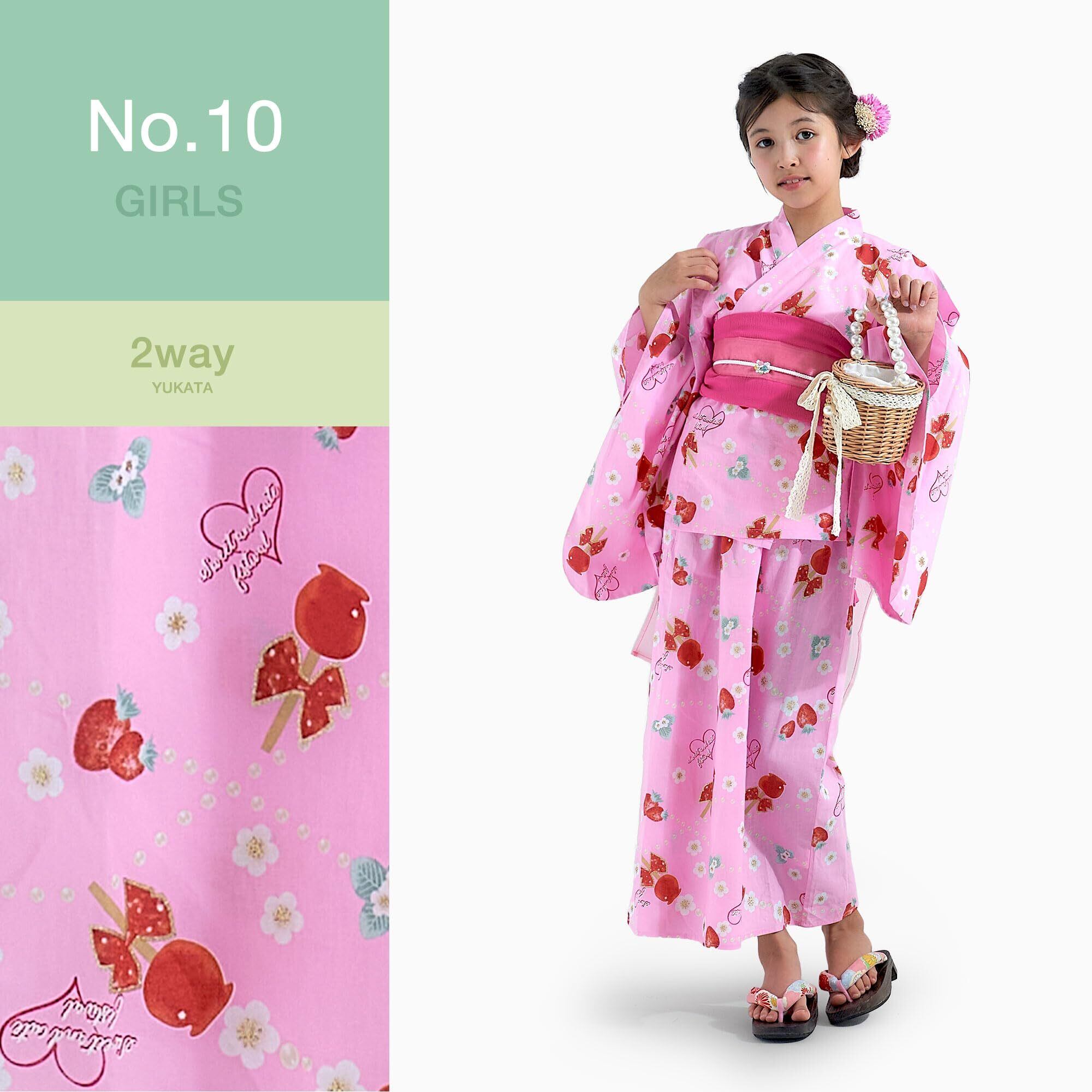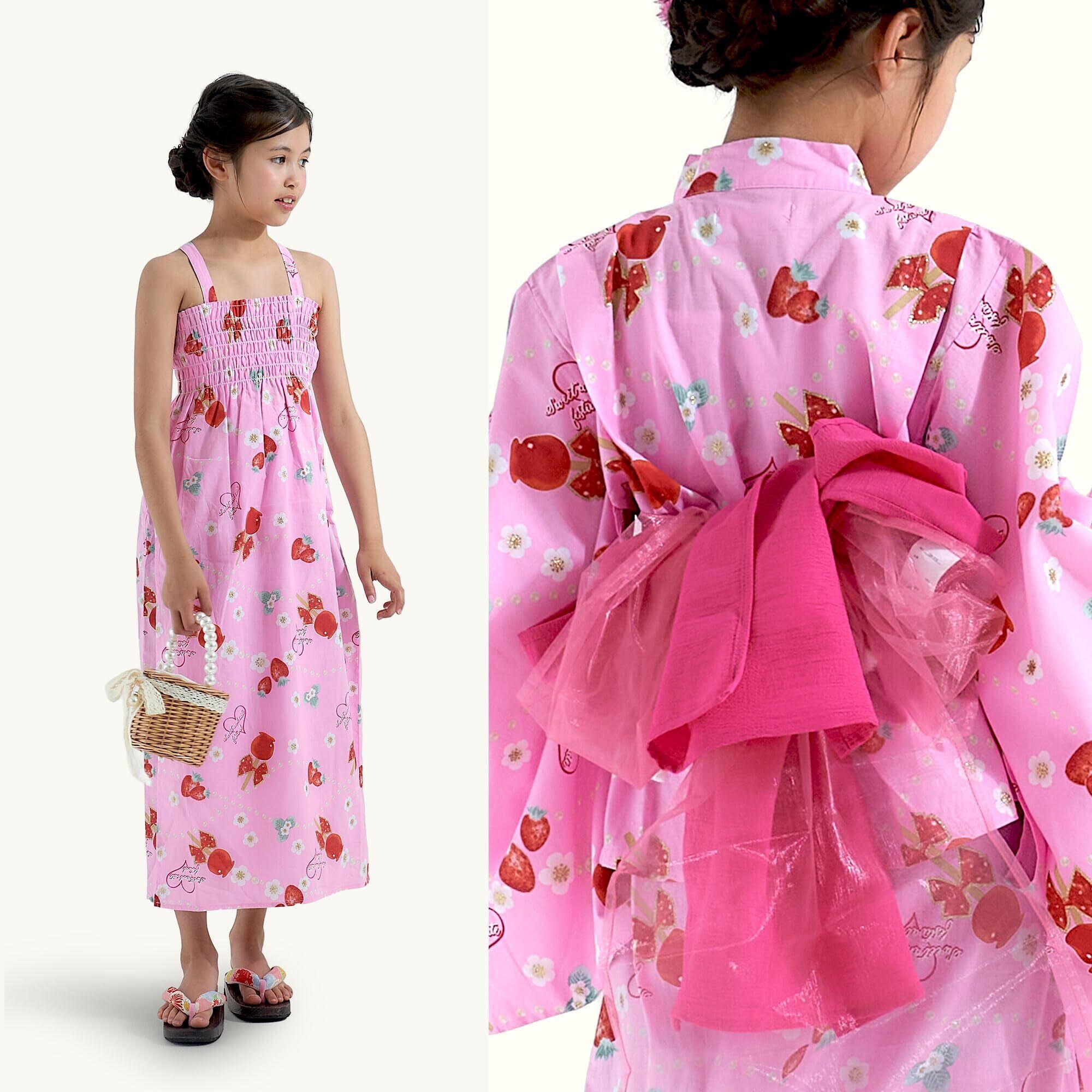 [NISHIORI] 浴衣 2way セパレート ワンピース 4点セット 女の子 キッズ 浴衣ドレス キャミソール 兵児帯2本がセット 10柄 6サイズ