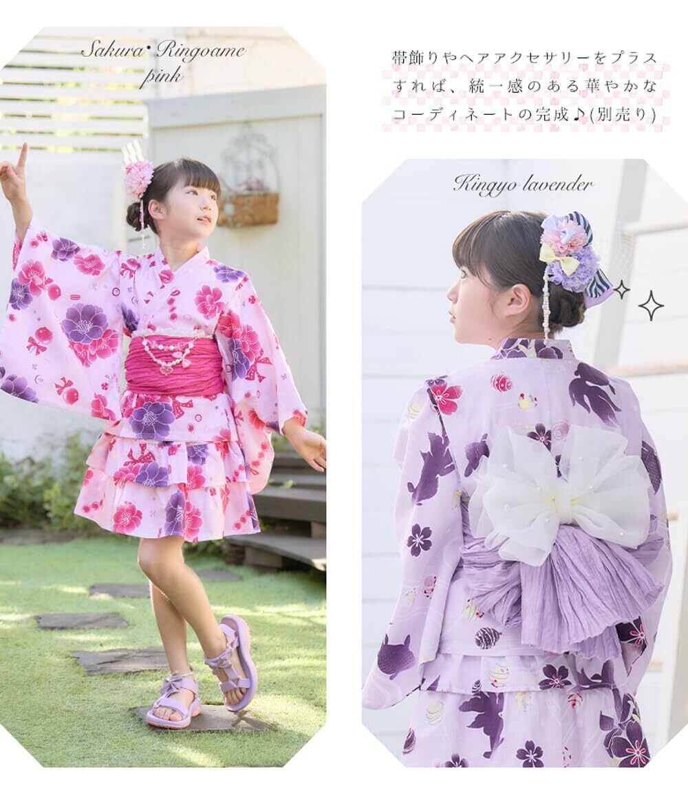 arisanaオリジナル セパレート浴衣 上衣・スカート・兵児帯の3点セット 110-140cm