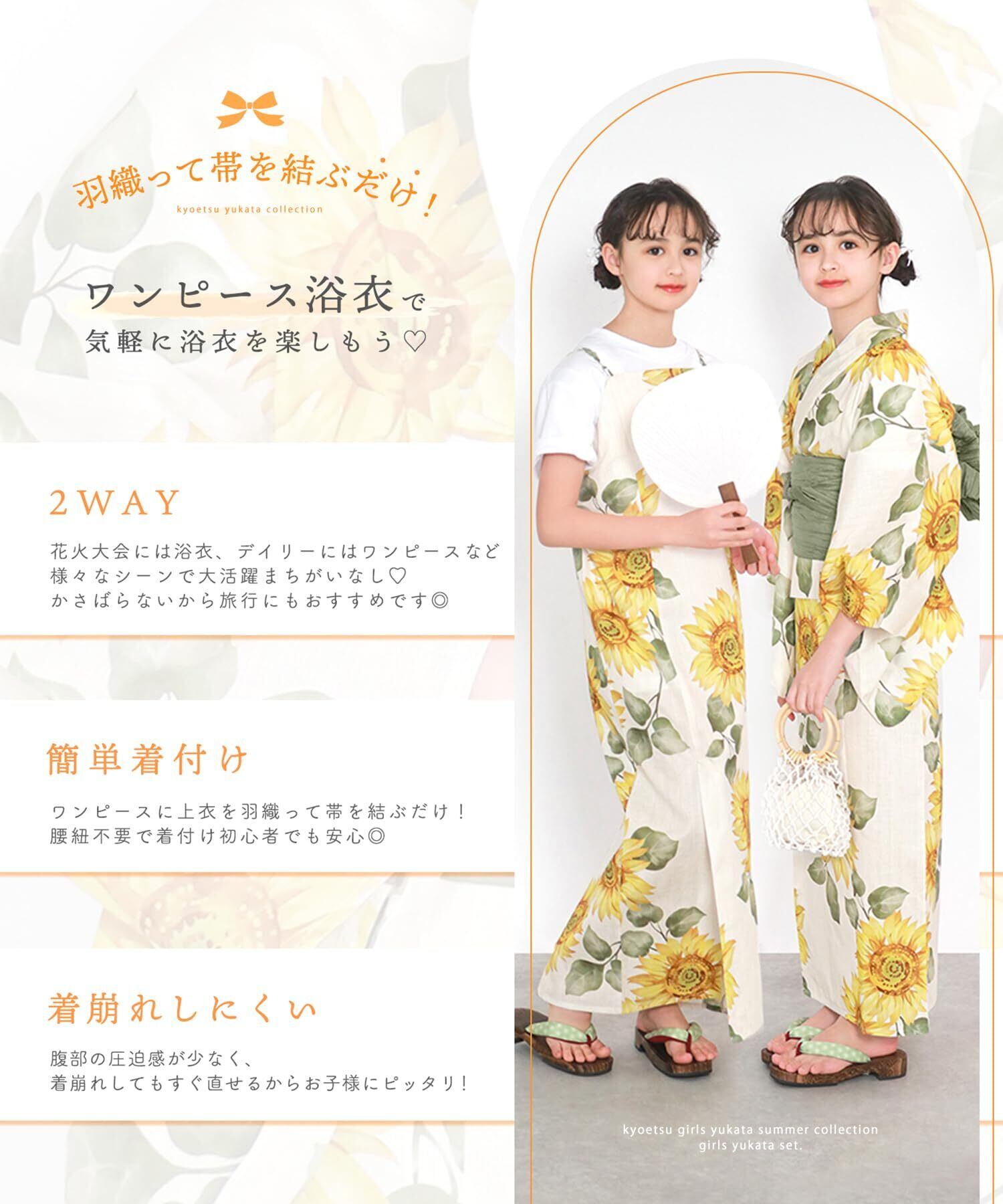 『[KYOETSU] 浴衣セット 浴衣 ワンピース 女の子 生成り』をぜひご覧ください!■