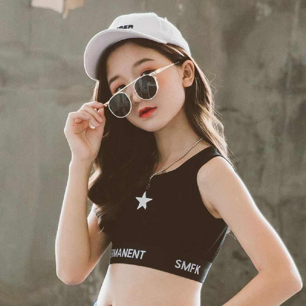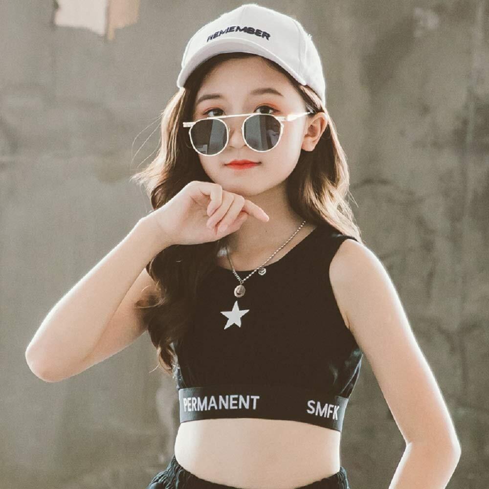 [エイーホ] タンクトップ キッズ 女の子 ダンス ハーフトップ 子供服 ヒップホップ スポーツ ステージ衣装 星柄 小学校 重ね着ロゴチューブトップ 黒