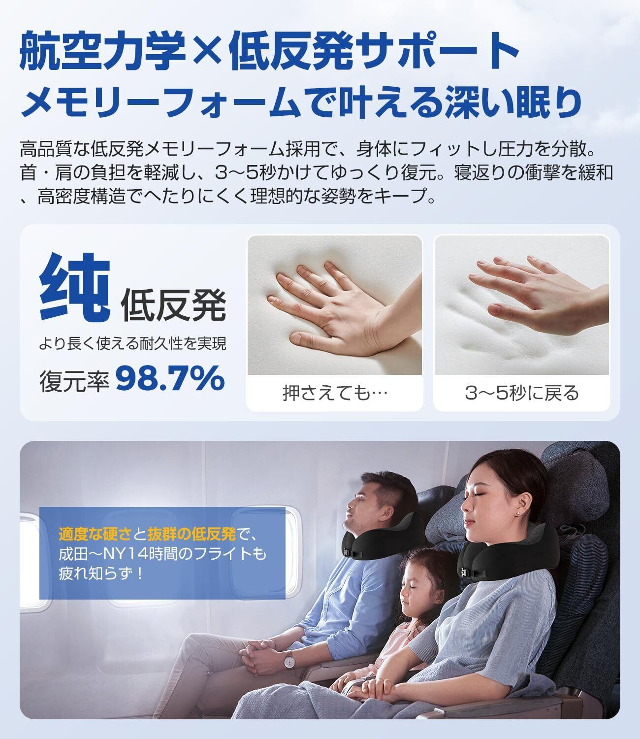 【360°全方位サポート・70%揺れ軽減】「飛行機での首の負担をなくしたい!」という願いに応える究極のネックピローが登場!トラベルピローの360°サポート設計は、飛行機の揺れにも強く、首に優しく寄り添うフィット感を実現。Greneoのネックピローは、航空機用の3Dメモリーフォームを採用。高い圧力分散性と70%の揺れ抑制効果により、飛行機 快適グッズとして最高の性能を実現しています!成田からニューヨークまでの14時間の長旅でも、筋肉疲労を62%軽減。今すぐ、あなたの旅のパートナーとして、この究極のネックピローを手に入れて、飛行機での疲れ知らずの旅を体験しましょう!