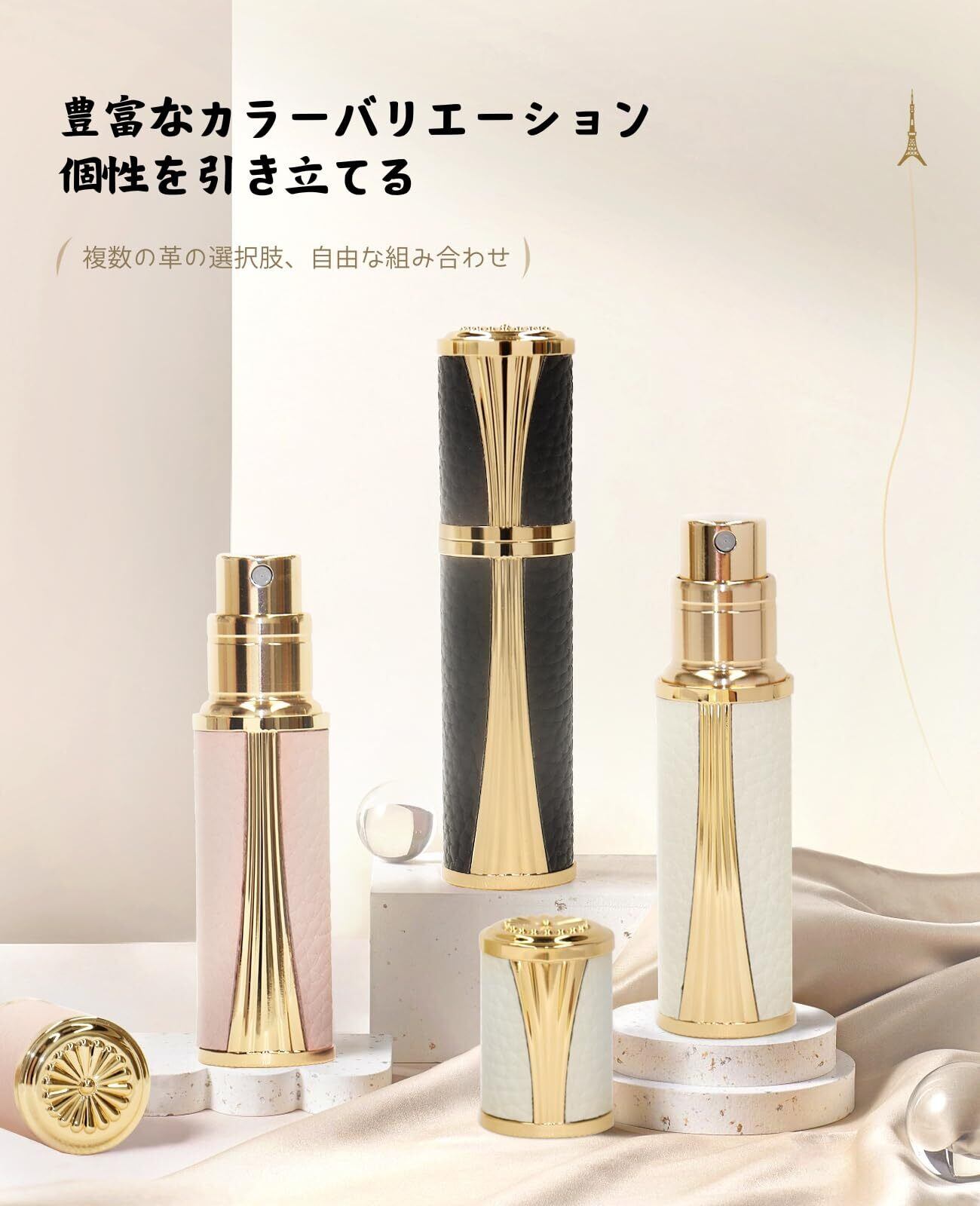 アトマイザーは高級レザーを使用しており、触り心地も良く、耐久性にも優れています。また、漏れにくい設計が施されているため、大切な香水を安心して持ち歩けます。底部からの充填が可能で、ワンタッチで簡単に補充できる使い勝手の良さも魅力の一つです。