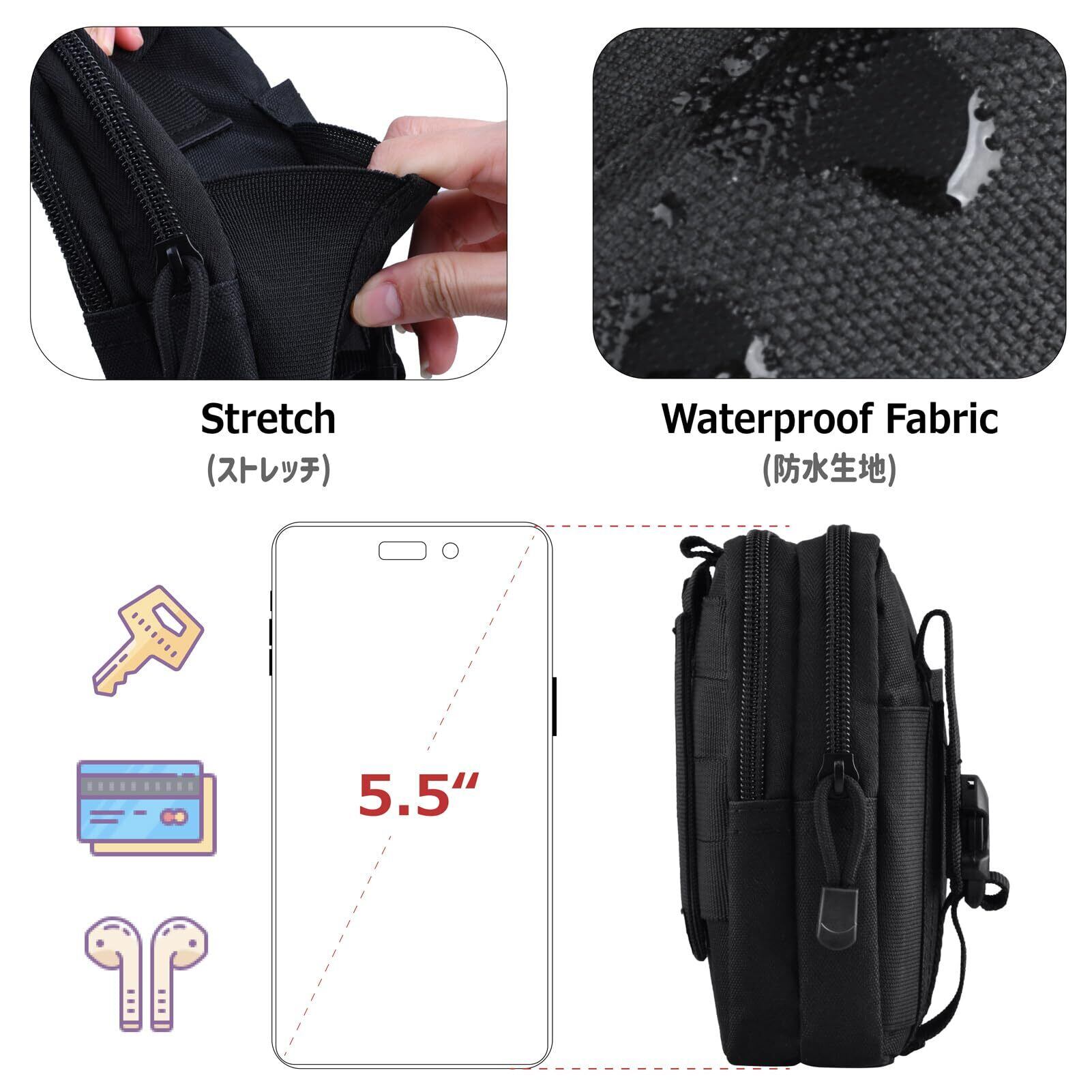 Azarxis ウエストポーチ スマホポーチ Molle対応 スマートフォン 多機能 モールシステム ユーティリティ EDCポーチ サバゲ― タクティカル ミリタリーポーチ (2ブラック)
