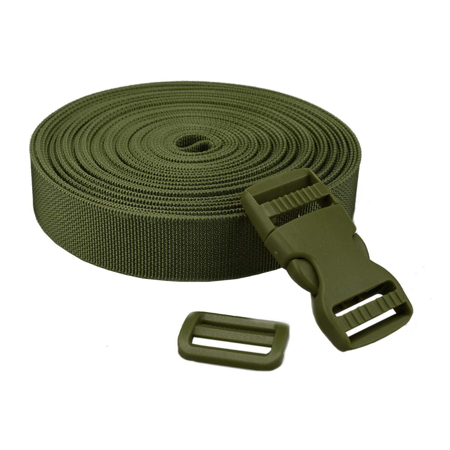 セット内容:ワンタッチ式バックル*10個+テープアジャスター*10個+長さ10mのベルト*1pcs