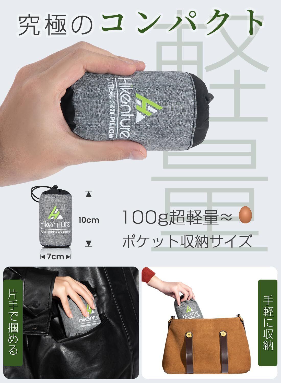 『【新着商品】Hikenture ネックピロー』は、旅行や長時間の移動に最適なコンパクトなネックピローです。超軽量の70g設計で、どこにでも簡単に持ち運べるのが特長。飛行機や電車の中で、リラックスしたい時にすぐに使えるアイテムとして、あなたの旅をサポートします!