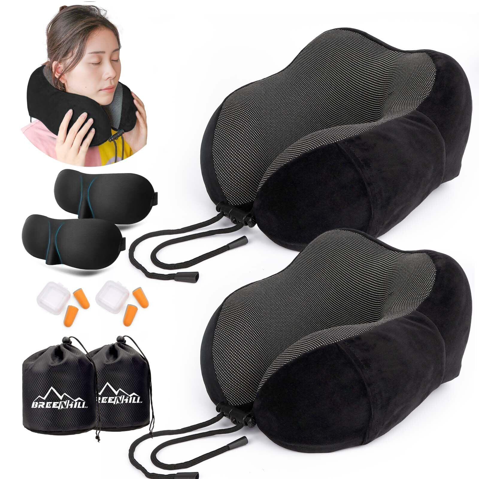 BREENHILL ネックピロー 低反発 首枕 U型 携帯枕 折りたたみ式トラベルピロー(収納袋付き)、軽量、洗濯可能、キャンプ/旅行/オフィス/家庭用車/飛行機/列車/バス用トラベルアクセサリ (2, ブラック, 標準)