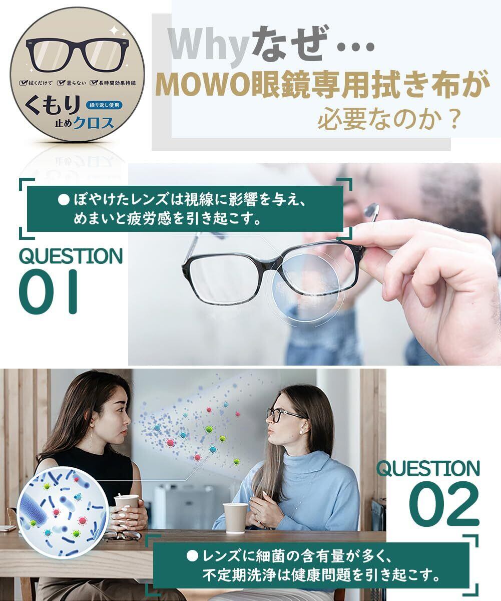 『【新着商品】[MOWO] メガネ くもり止め メガネ拭き』は、600回以上の使用が可能な強力な曇り止めクロスです。一日一回の使用で、透明な視界を維持し、快適な視覚体験をサポートします。いつでもクリアな視界が手に入ります!