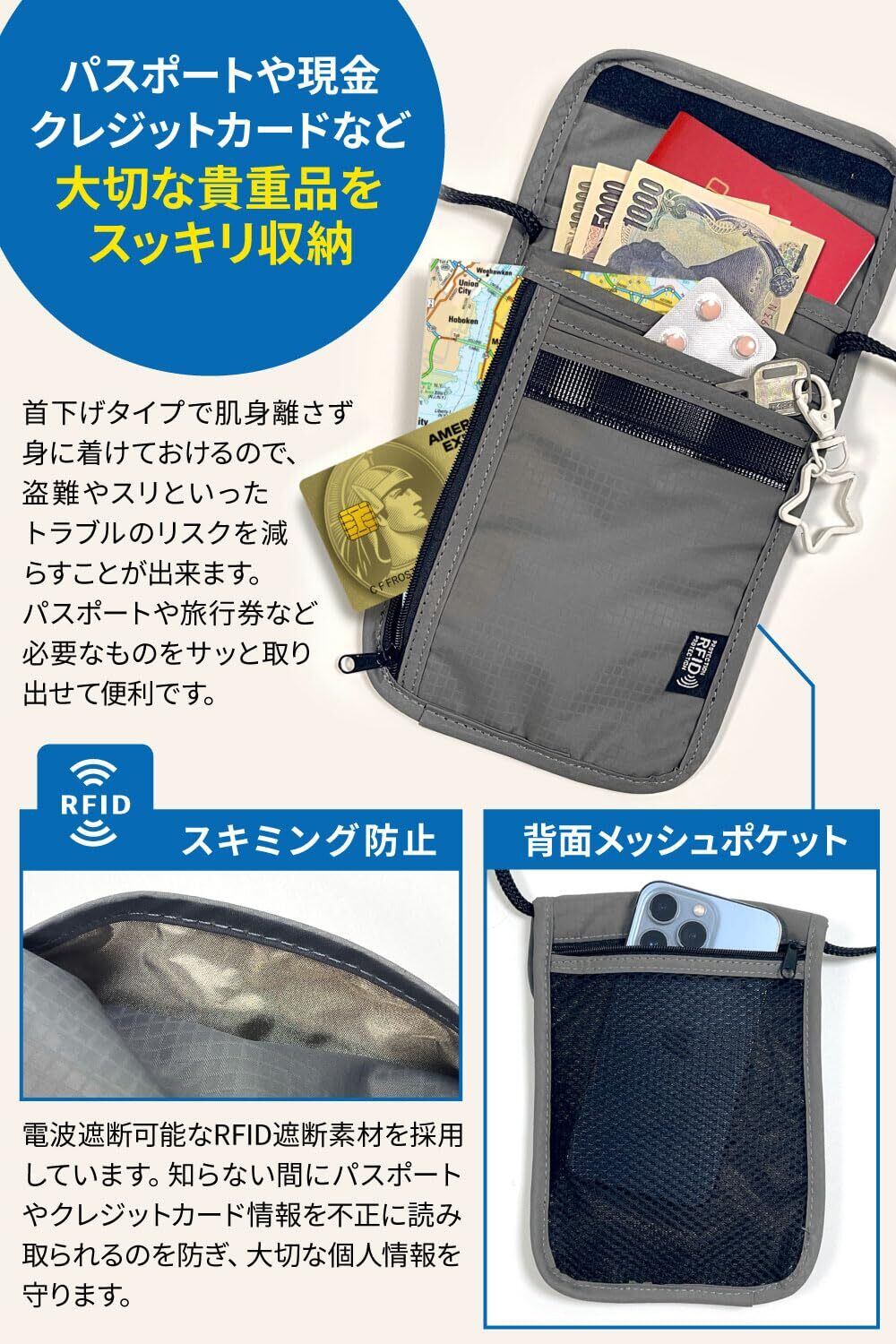 【 RFID遮断素材でスキミング防止! 】 電波遮断可能なRFID遮断素材を採用しています。知らない間にパスポートやクレジットカード情報を不正に読み取られるのを防ぎ、大切な個人情報を守ります。