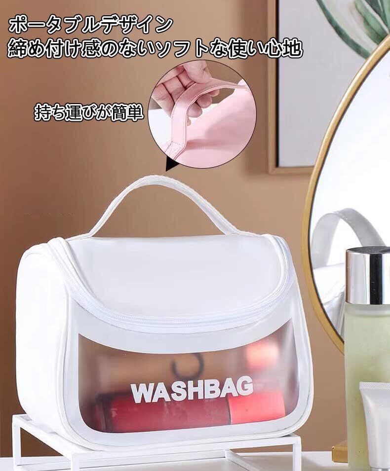 【在庫セール】ビニールバッグ WiViVi 防水 透明 ビニールポーチ クリアポーチ 旅行 スパバッグ 可愛い お風呂ポーチ 洗面道具化粧ポーチ 大きめ 小 温泉バッグ (白色翻盖)