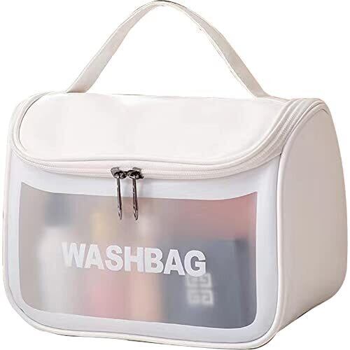 ビニールバッグ WiViVi 防水 透明 ビニールポーチ クリアポーチ 旅行 スパバッグ 可愛い お風呂ポーチ 洗面道具化粧ポーチ 大きめ 小 温泉バッグ (白色翻盖)