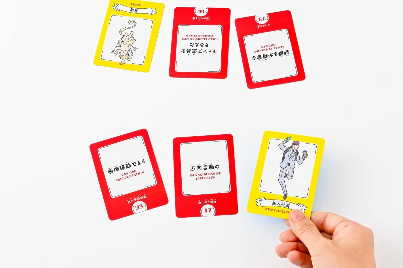 与えられたキャラクターカードと特徴カードの組み合わせで、相手のキャラクターよりどう強いかを即興で言い合う1対1のトークバトルです。ジャッジするのは周りのプレイヤーです。