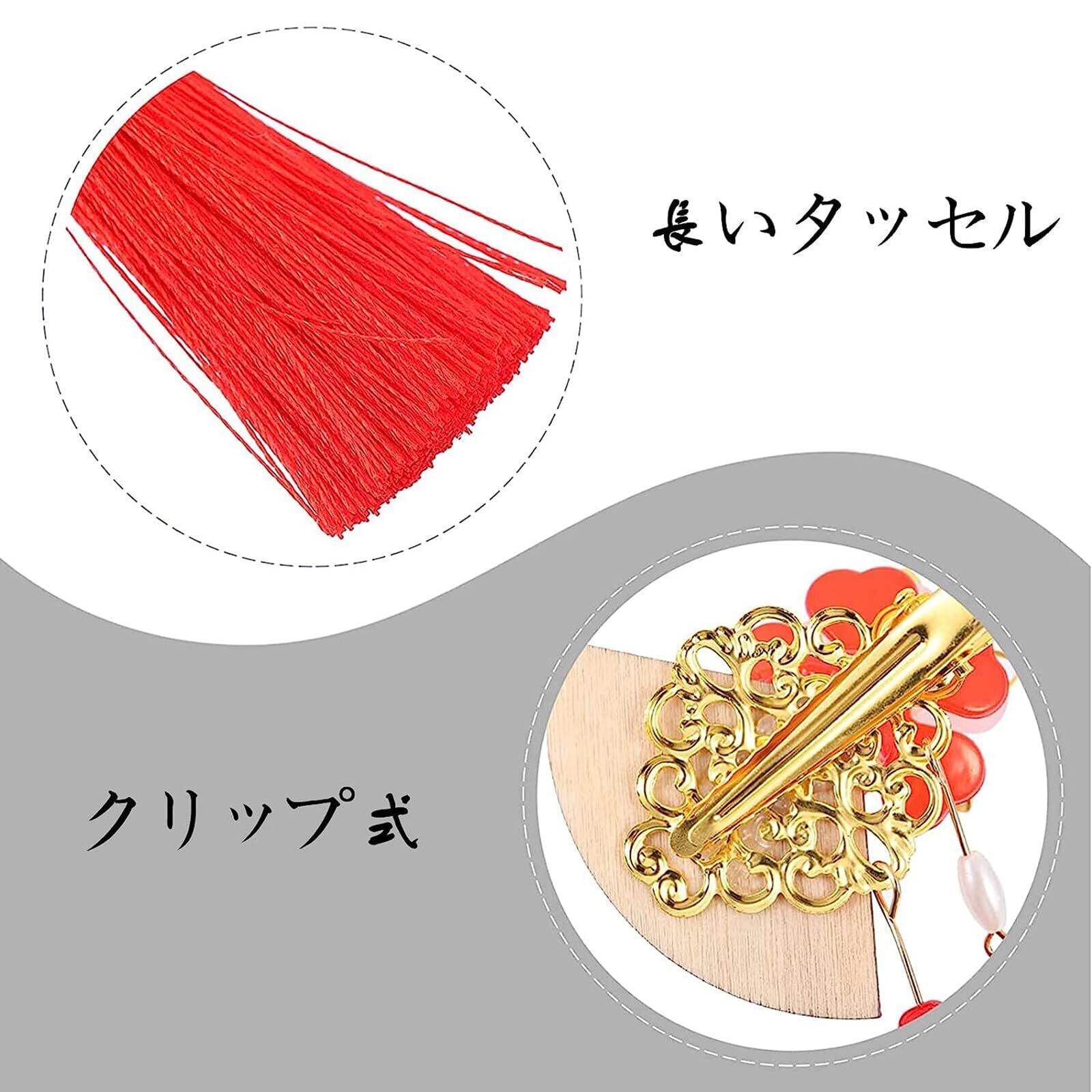 ヘアピン ヘアアクセサリー 女性 子供髪飾り 2枚組 古典的 扇子 鈴 タッセル ヘアクリップ 中華風 漢服 浴衣 和装 ヘアクリップ 入学式 卒業式 七五三 コスプレ プレゼント (レッド)