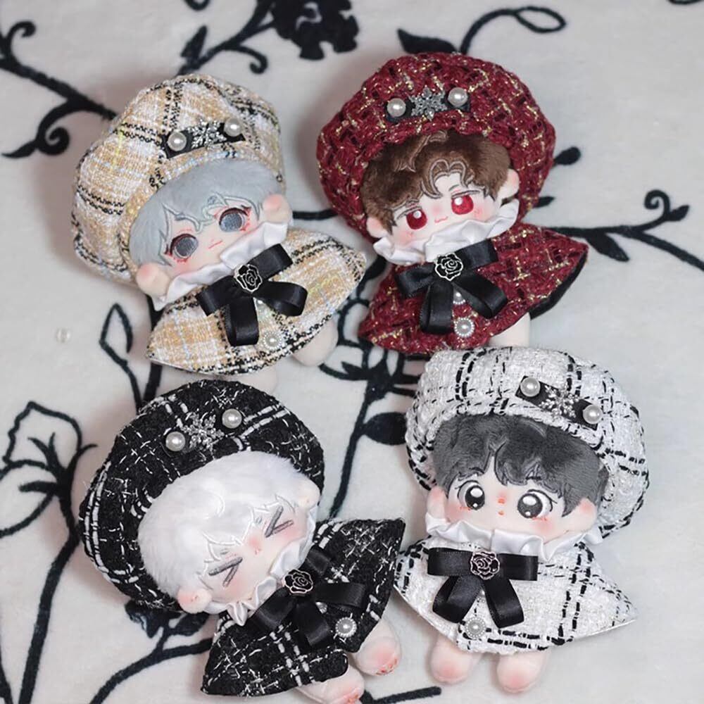 niannyyhouse 10cm ぬいぐるみ 服 ポンチョ 帽子 ショールセット 綿人形 人形がドレスアップ 着せ替え (Black)