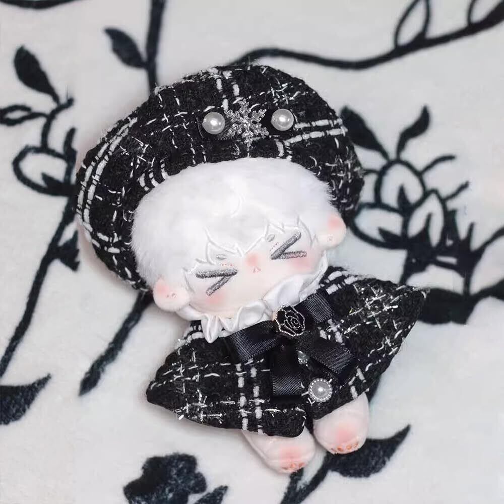 【在庫処分】niannyyhouse 10cm ぬいぐるみ 服 ポンチョ 帽子 ショールセット 綿人形 人形がドレスアップ 着せ替え (Black)