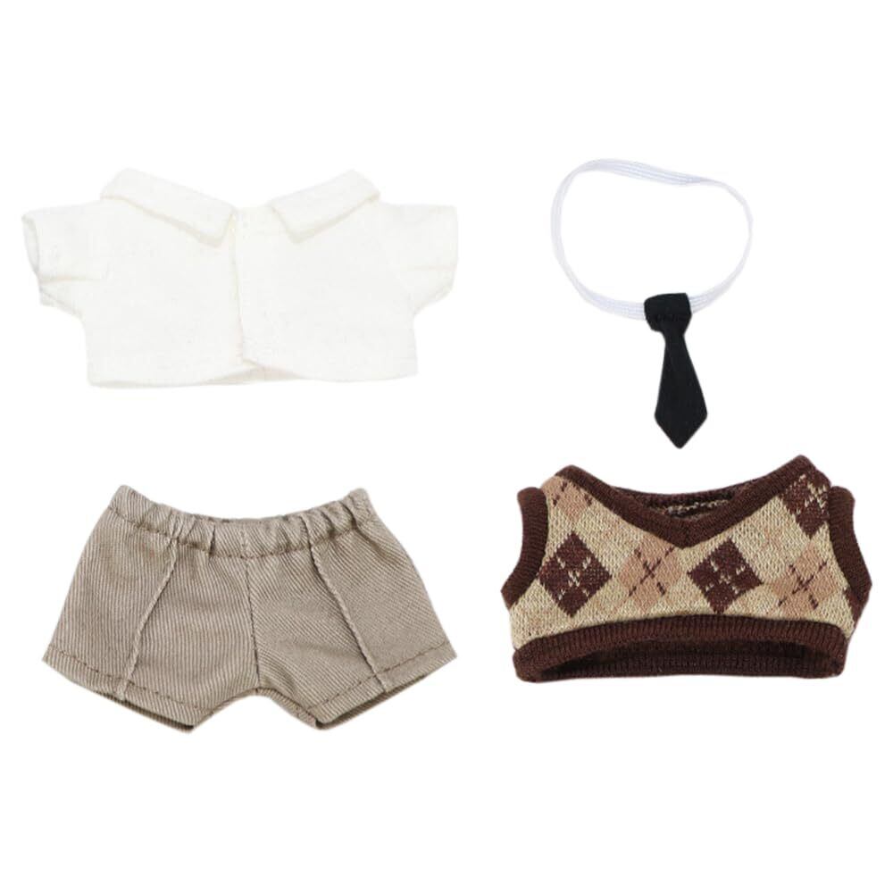 【新着商品】niannyyhouse 10cm ぬいぐるみ 服 ワイシャツ ズボン ネクタイ ベスト キャンパスウェア 着せ替え 綿人形 アクセサリー (Brown)