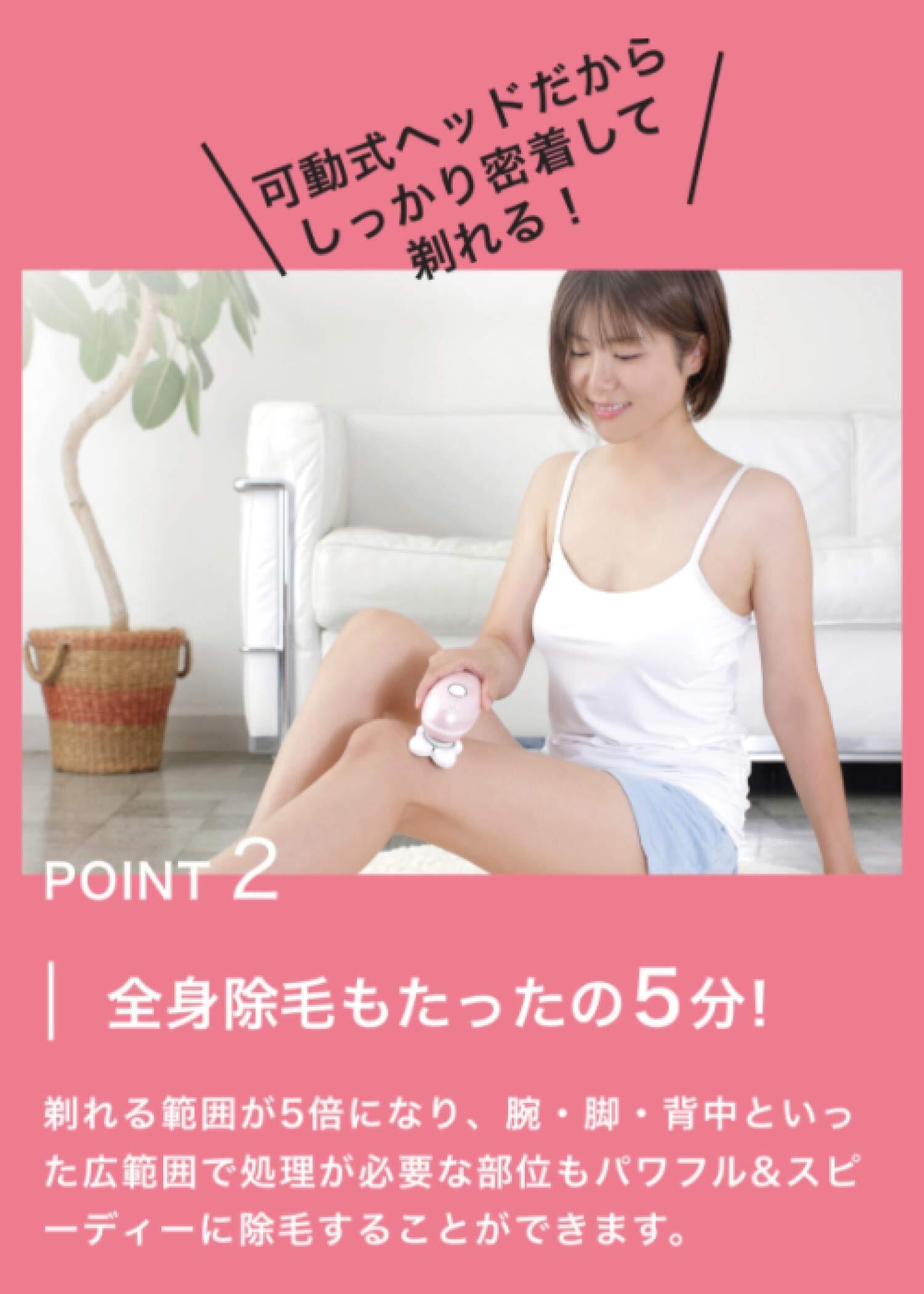 【シェービング剤不要!たったの5分で全身除毛へ】独自構造によって剃れる範囲が5倍になったことで、腕・脚の気になる部位から全身へ広範囲に対応。お肌に直接刃が触れないため、お肌ダメージを気にせずお使い頂けます。乾いたお肌にも使えるため、シェービング剤不要です