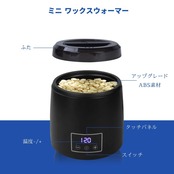【使用方法】①ワックスウォーマーを電源コンセントに接続してください。電源ONボタンを押してください。②ワックス豆を鍋に入れます。③ご希望の温度を設定してください。適宜、攪拌しながら温度にムラがないようにします。④ワックスが十分に溶けたら、手の甲などにワックスを少しつけて適温であるかどうかを確認します。火傷に十分注意してご確認ください。