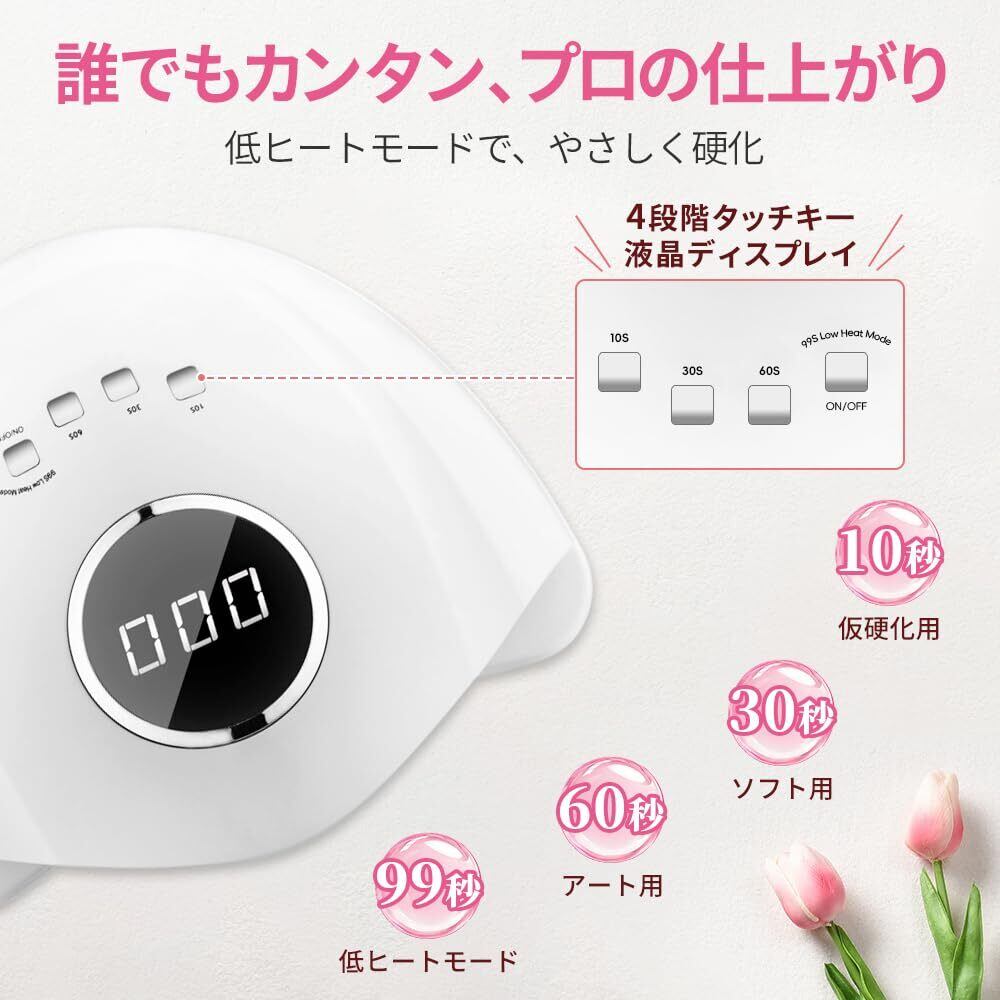 この『【新着商品】ネイルライト【アップグレード版】』は、168Wの強力な出力を誇り、短時間でしっかりと硬化が可能です。ジェルネイルやレジンにも対応しており、自宅で簡単にサロン品質のネイルが楽しめます。