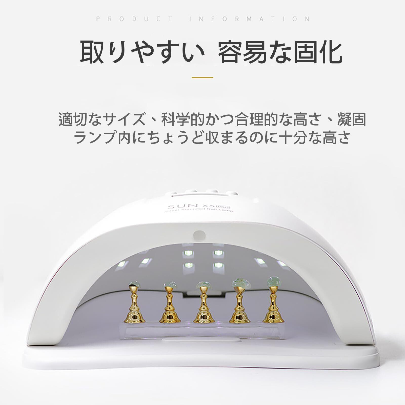 ゴールドの美しいデザインが施されたネイルスタンドは、コンパクトにまとめられるため、持ち運びに便利です。自宅だけでなく、サロンや旅行先でも気軽にお使いいただけ、いつでもどこでもネイルを楽しめます。