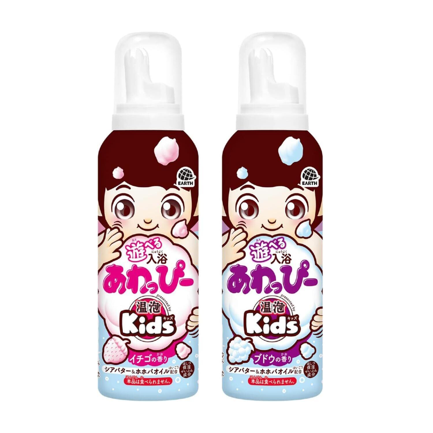 【在庫処分】温泡 【セット買い】 Kids 遊べる入浴 あわっぴー (イチゴの香り) 1本+ Kids 遊べる入浴 あわっぴー (ブドウの香り) 1本 ONPO キッズ 子で一緒に お風呂 泡 子ども用 おもちゃ バスグッズ (アース製薬)