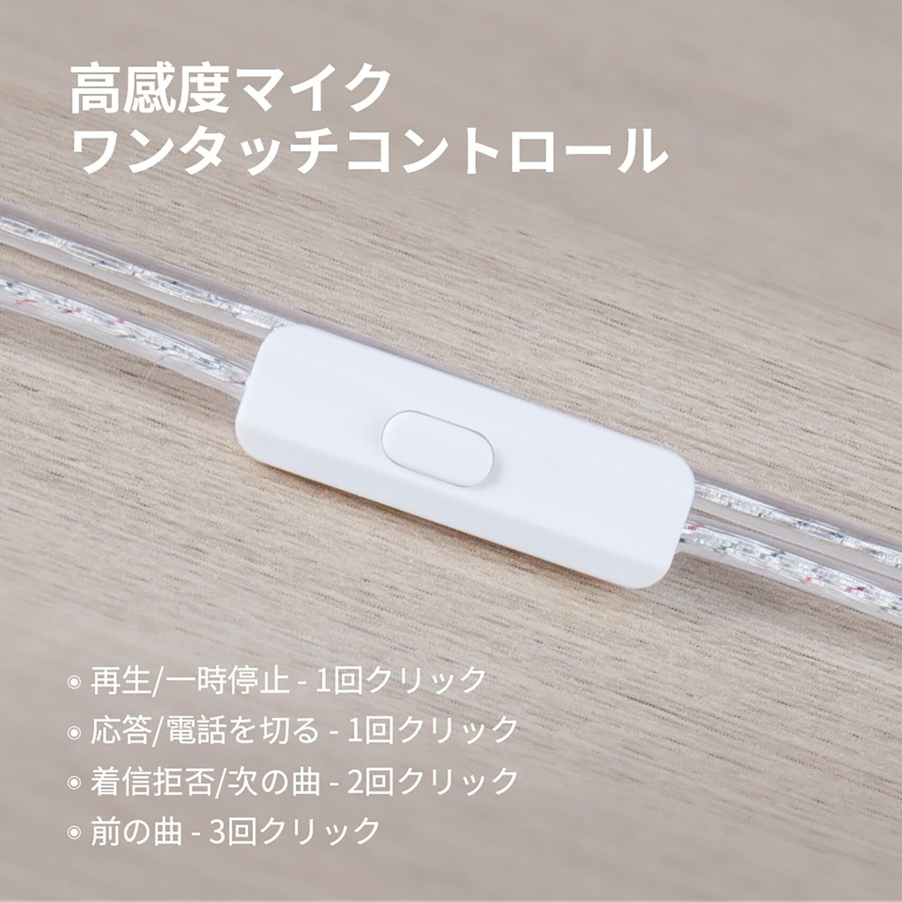 【高感度マイク】ワンタッチコントロール 再生/一時停止 - 1回クリック 応答/電話を切る - 1回クリック 着信拒否/次の曲 - 2回クリック 前の曲 - 3回クリック