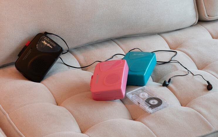 このカセットプレーヤーで思い出の音楽を聴くことができます。
