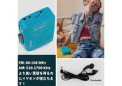 外部スピーカー、Φ3.5mmイヤホン、取り外し可能なベルトクリップ付き。単3電池2本(別売り)またはUSB電源(付属)で駆動。