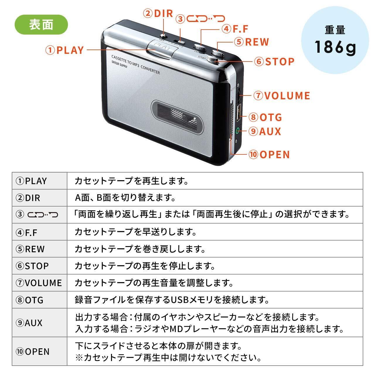 サンワダイレクト カセットテープ MP3変換プレーヤー デジタル化 USB保存 400-MEDI016