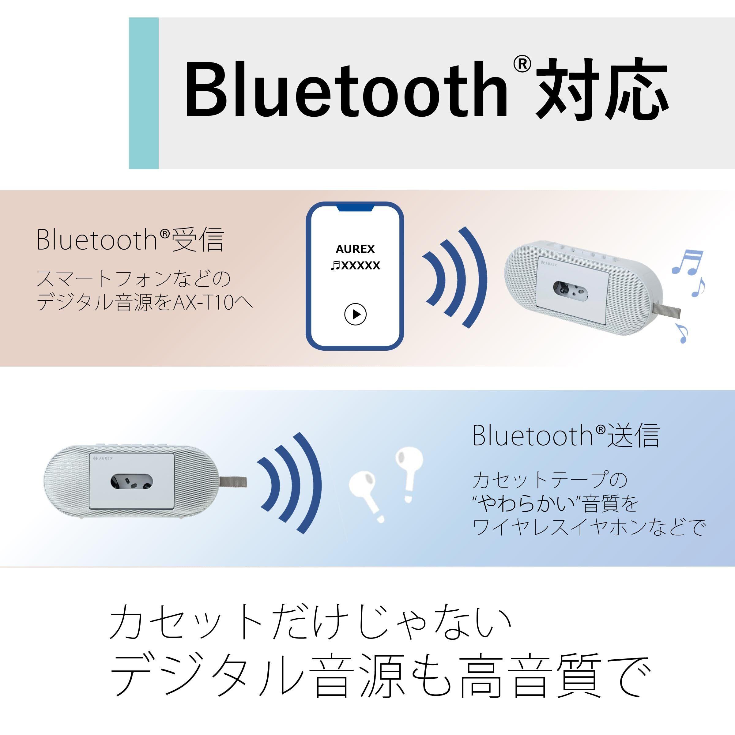 【人気商品】AUREX カセットプレイヤー AX-T10 USB Type-C対応 LEDライト